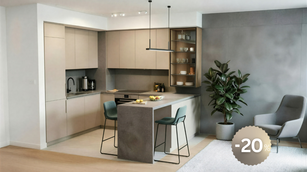 CENA KUHINJE: 8.690 EUR – POPUST AIRPORT GARDEN STANARE 20% – NOVA CENA 6.952 EUR