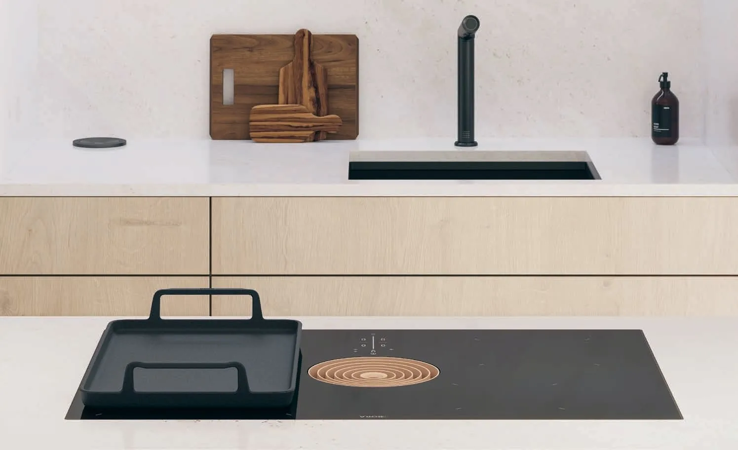 Bezvremenski elegantni BORA M Pure impresionira svojim dizajnom u ravni sa površinom.