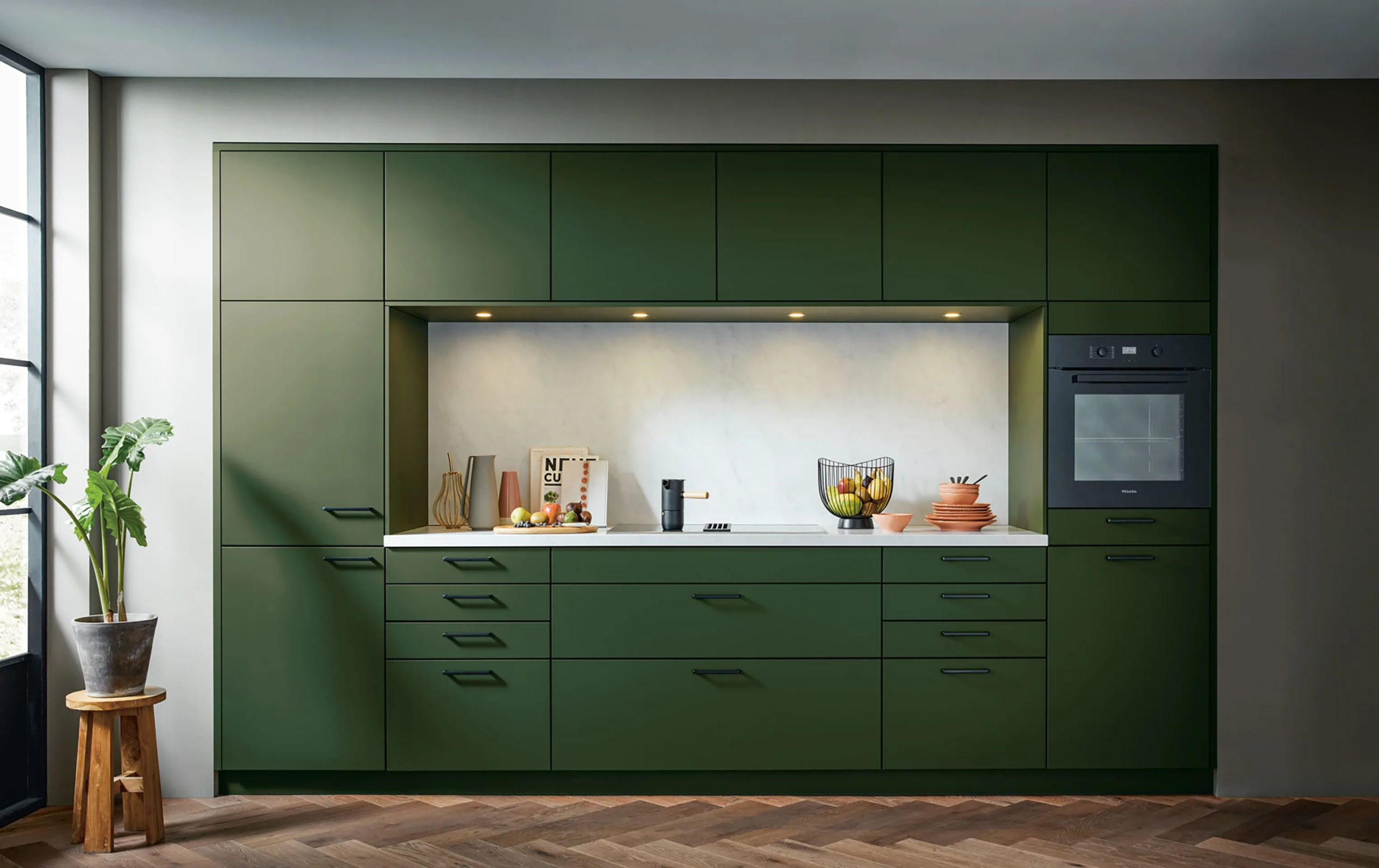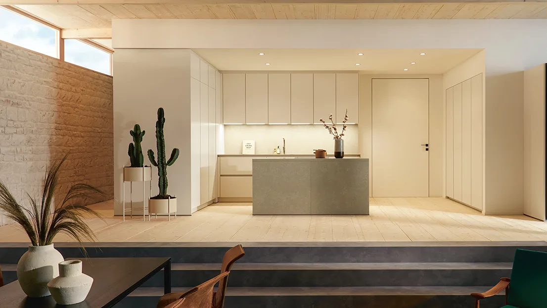 Schüller SIENA serija ima vrata od mat somotsko lakirane ploče sa zaobljenim ivicama i savršeno glatkom završnom obradom, dostupnom u 28 boja, sa AFP tehnologijom protiv otisaka prstiju.