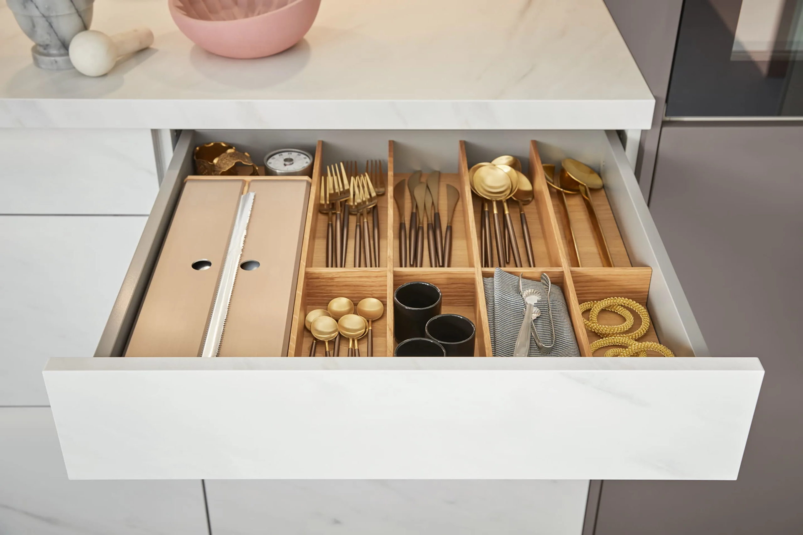 Schüller TARGA linija sa visokokvalitetnim MDF frontama dostupnim u 3 dekora. U imitaciji tamnog čelika, mermera Avoro i Scuro mermera. Završna izrada u AFP svojstvu, smanjuje otiske prsta.