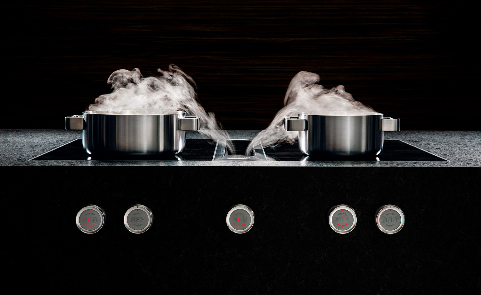 Ili - fizika može biti i elegantna. Mi isparenja i mirise nastale tokom kuvanja činimo nepostojećim, oni iščezavaju, poništeni u samom "korenu", usisani na mestu na kojem i nastaju: direktno sa ugradne ploče - iz lonca, tiganja, grila ili vok-a! Mi to ne činimo nikakvom magijom, već osnovnim principima mehanike fluida. Jednostavno, primenjujemo unakrsni tok vazduha [...]
